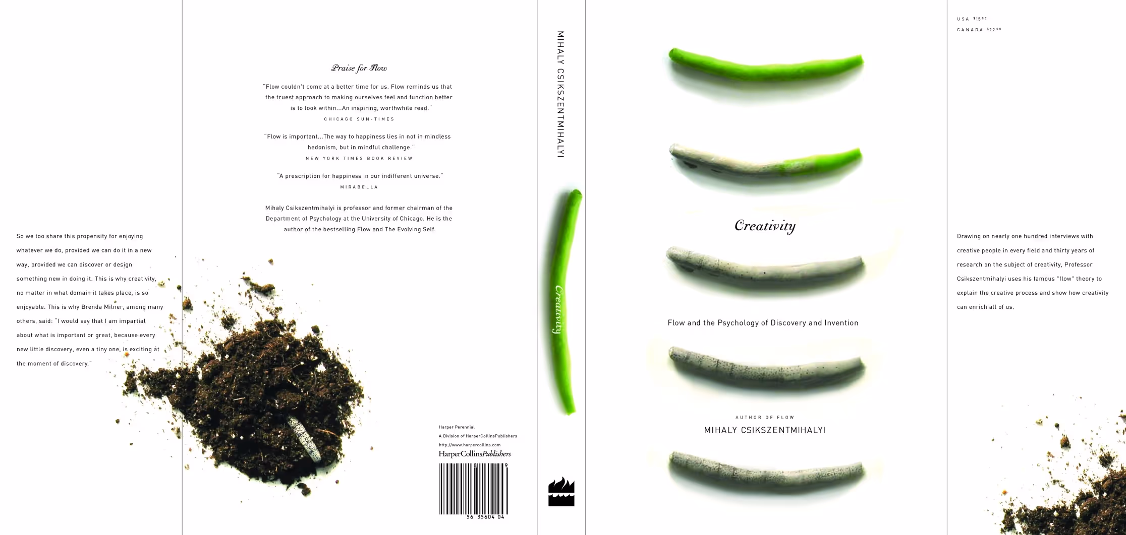 Twenty years ago, as a student at the School of Visual Arts, I was asked to redesign a book cover as part of a routine assignment. I picked Creativity by Mihaly Csikszentmihalyi. I redesigned the cover to show a central idea to the book — that two things may appear unlike initially, but one can discover they actually have commonalities. It was the first time I had thought about creativity in any serious way. For some unknown reason, I was compelled to depict the transformation of a green bean to a worm, sequentially painting its visual metamorphosis in an analog way, to rearrange reality.